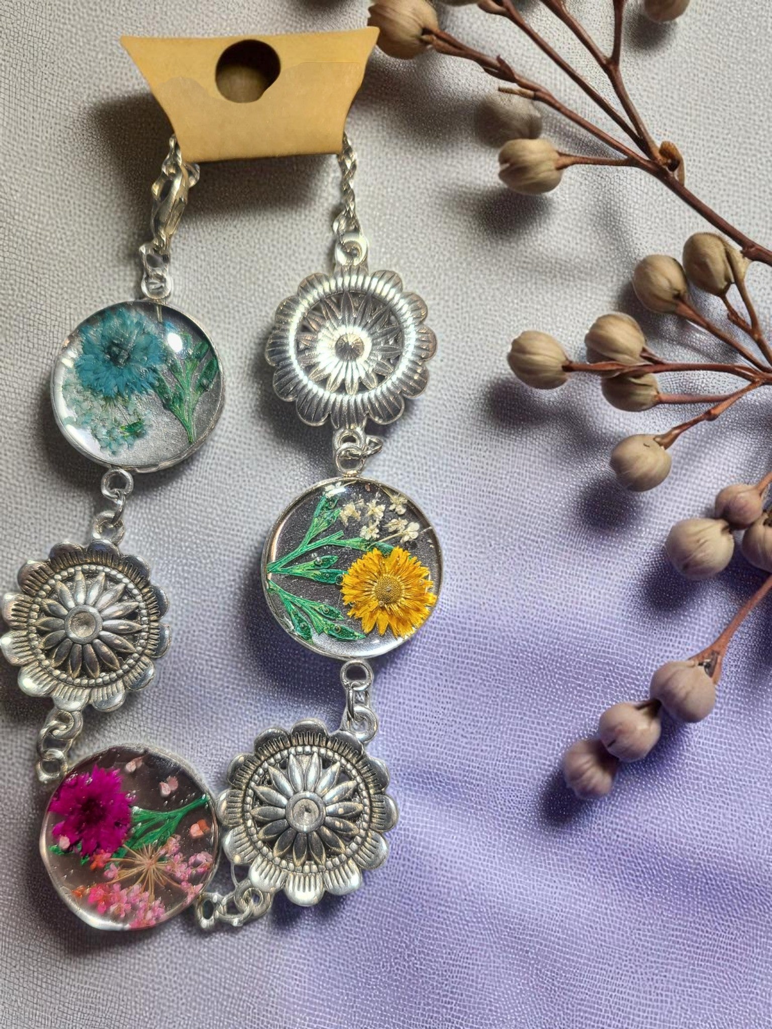 Meet our newest addition: the New Product! This one-of-a-kind bracelet features real, preserved flowers that will add a touch of nature to any outfit. Stand out in style and embrace your unique side with this quirky piece. (Limited supply, so get yours before they're gone!)