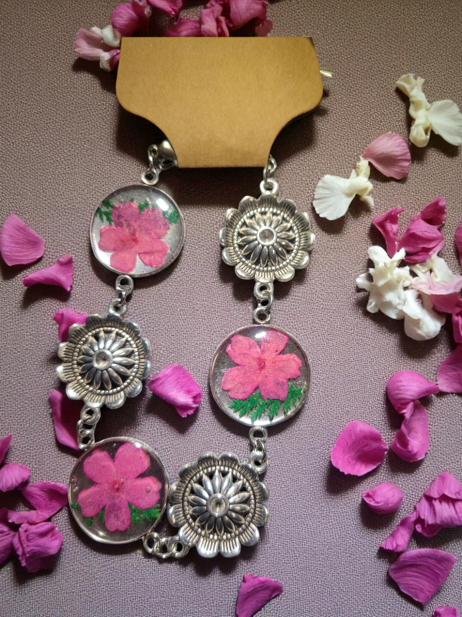 Indulge in the exquisite beauty of our New Product. Each bracelet features real, delicate flowers encased in clear resin, creating a striking and unique piece. Elevate your style with our luxurious and exclusive design.